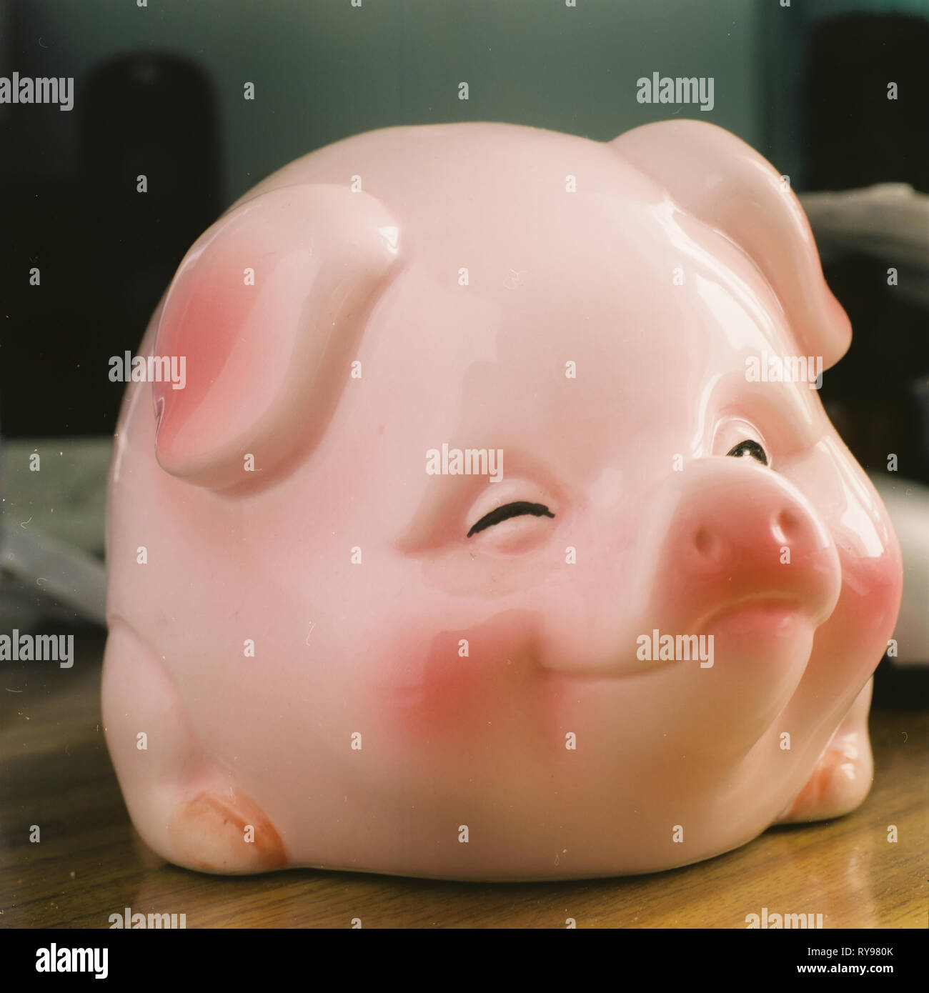 ceramic piggy bank children s toy smiling face of a sleeping pig Stock Photo Alamy Very well made.