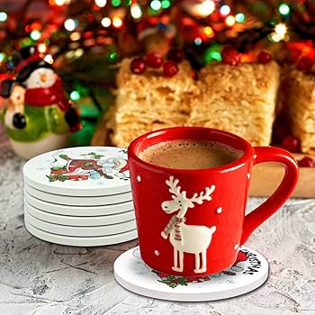 6Pcs Christmas Coasters for Drinks Absorbent Xmas Coaster with Cork Base for Coffee Bar Table Protection Christmas Holiday Decoration Amazon Home Very well made.