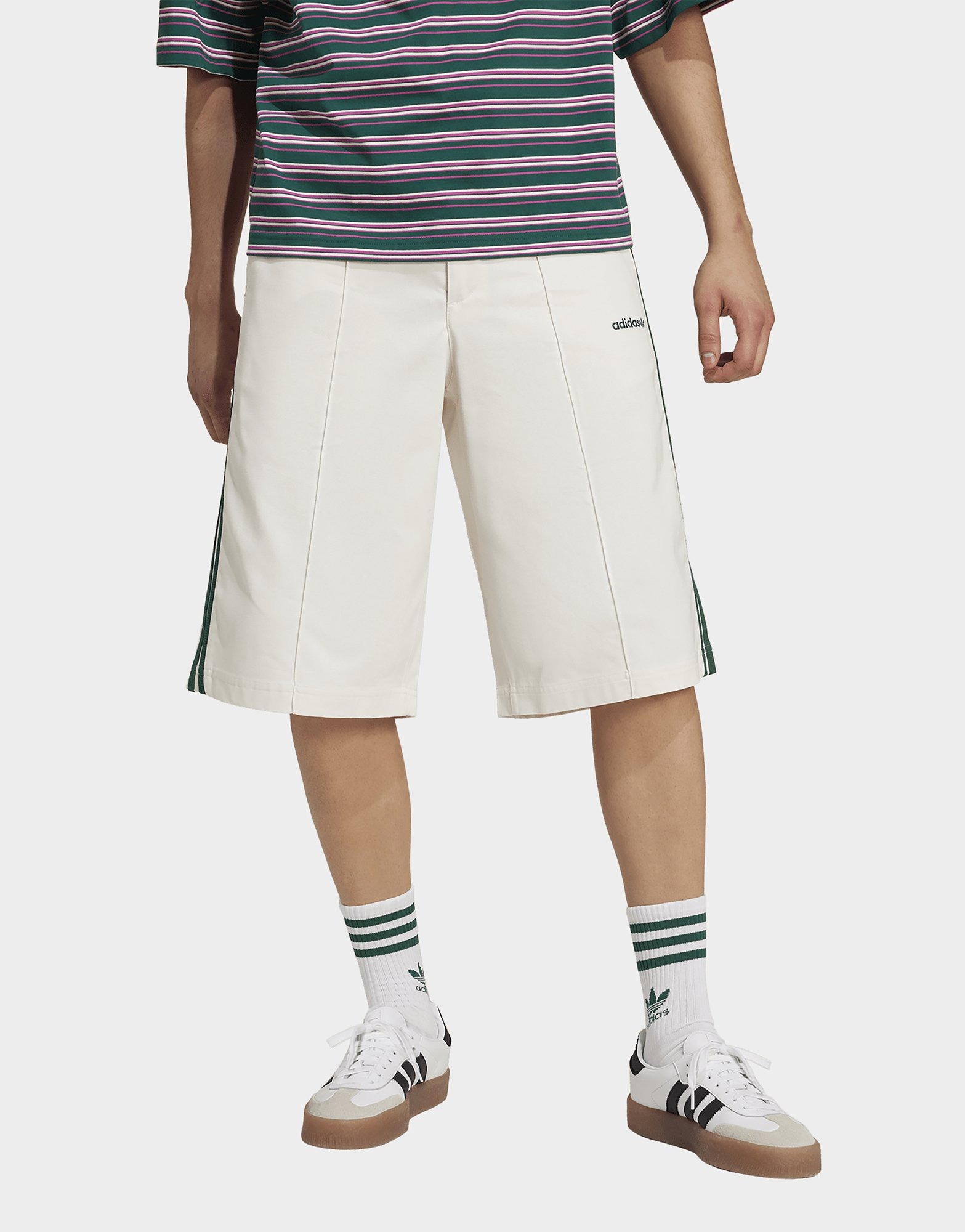 White adidas 80s Loose Buttoned 3 Stripes 11 Inch Bermuda Shorts JD Sports UK Very well made.