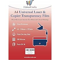 Universal Laser Transparency Film A4 Clear OHP Sheets Laser Printer Acetate Film Overhead Projector Film Tracing Graphic Design Transparency Paper Printable Sheets Fast Dry 120 Micron 10 Sheets Amazon... Very well made.