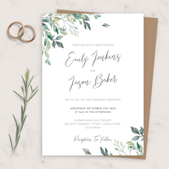 Wedding Invite Green Leaves Elegant Wedding Invitation Printable Wedding Invites Template Editable Invitation PDF JPG PNG Etsy Ireland Very well made.
