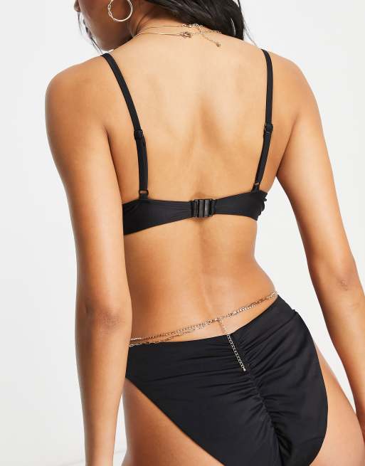 ASOS DESIGN mix and match high leg Brazilian bikini bottom with ruche back in black ASOS Very well made.
