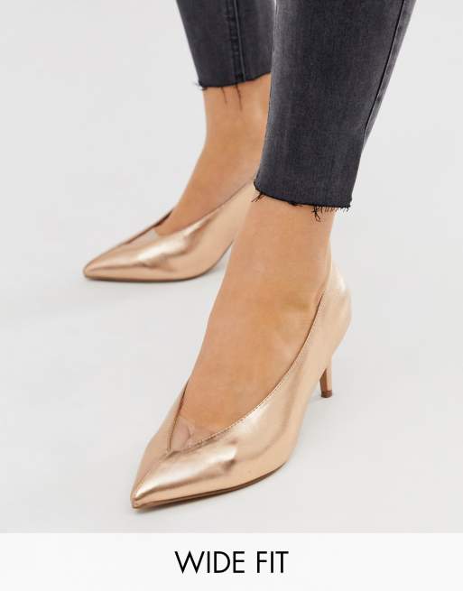 Zapatos de sal n de corte ancho con tac n medio y brillo dorado Very well made.