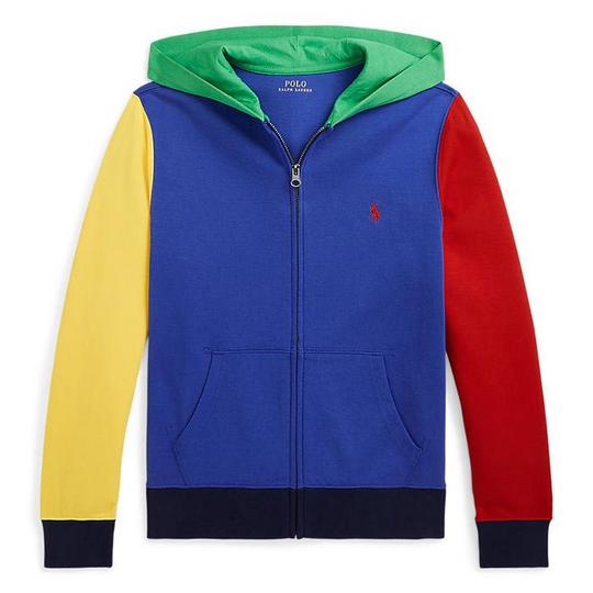 Polo Ralph Lauren Boy s Colourblocked Ombre Zip Hoodie Sapphire Stripe Multi Colour Size Medium 10 12 Very well made.