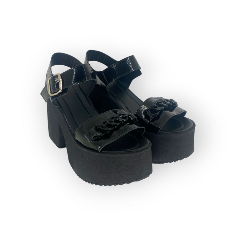 Sandalia Outlet Faja Cadena Charol Negro Very well made.