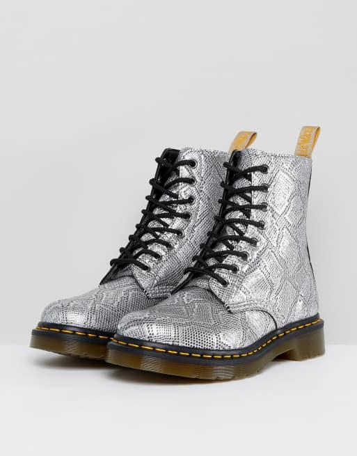 Botas de cordones en serpiente plateada de Dr Martens Very well made.