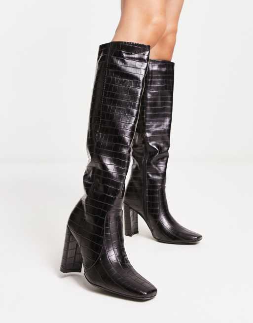 Botas vaqueras de piel vaquera para hombre color negro estampado de cocodrilo cuadrado Very well made.