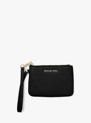 Michael Kors Metallic Center Stripe Leather Wristlet Black Gold Very well made.