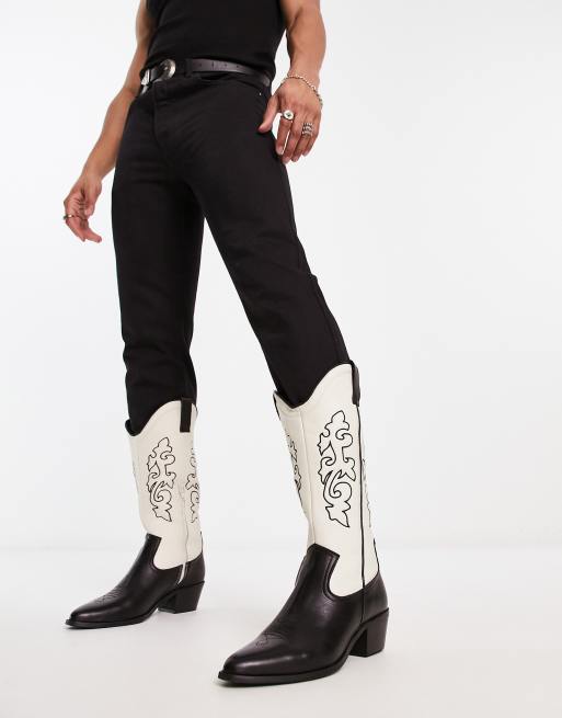 Botas color crema y negras de tac n de estilo w stern con dise o Very well made.