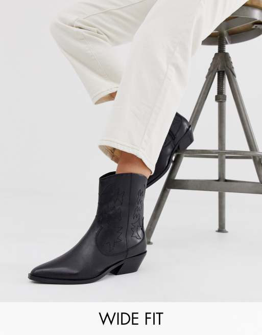 Botas estilo cowboy de corte ancho en cuero negro Autumnal de ASOS Very well made.