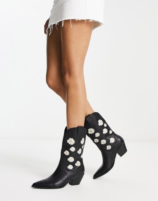 Botas negras estilo cowboy con dise o de margaritas de Daisy Very well made.