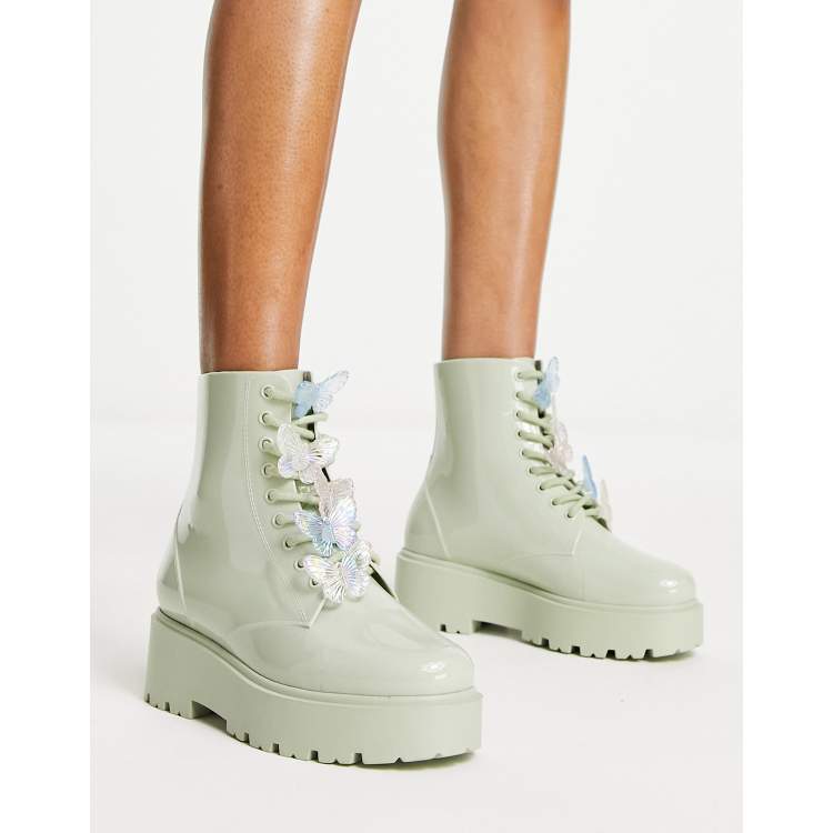 Botas de agua verde menta con cordones y detalles de mariposas Very well made.