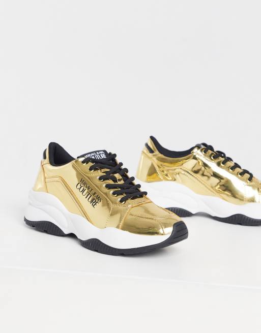 Zapatillas de deporte doradas metalizadas con suela gruesa de Very well made.