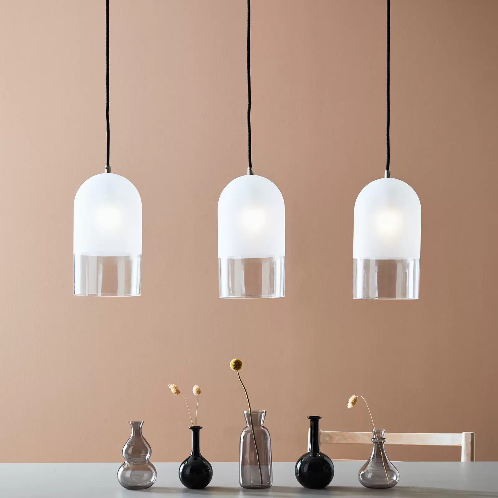Pendant light Cope with frosted glass 3 bulb Very well made.