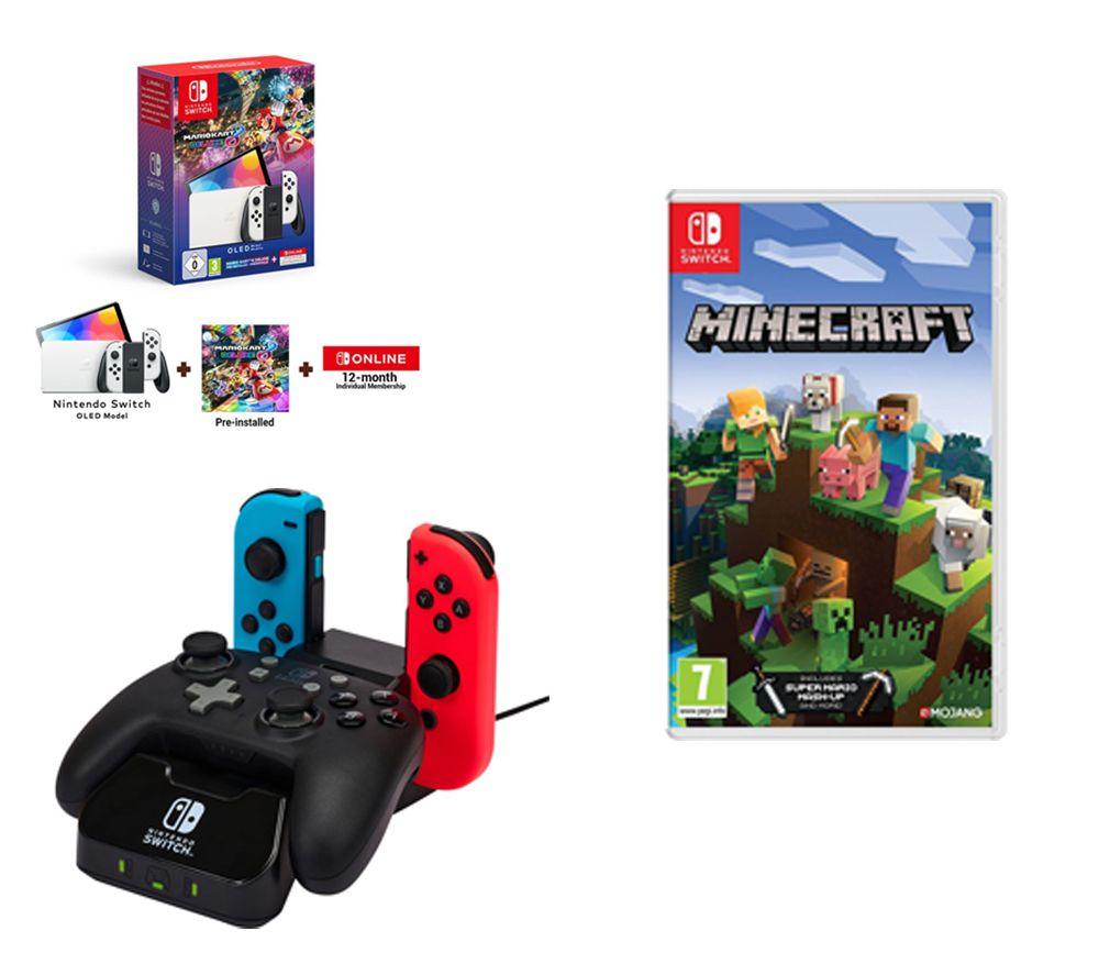 NINTENDO Switch OLED White Mario Kart 8 Deluxe Online 12 Month Membership PowerA Controller Charging Station Minecraft Bundle Very well made.