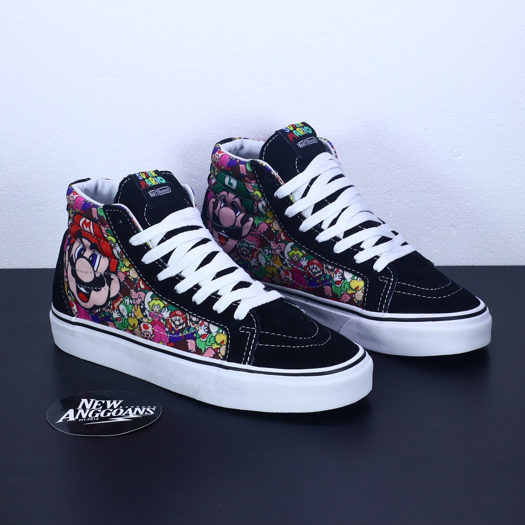 Sepatu Vans Sk8 Skate High Motif X Nintendo Super Mario Bross Luigi Black White Hitam Putih Very well made.