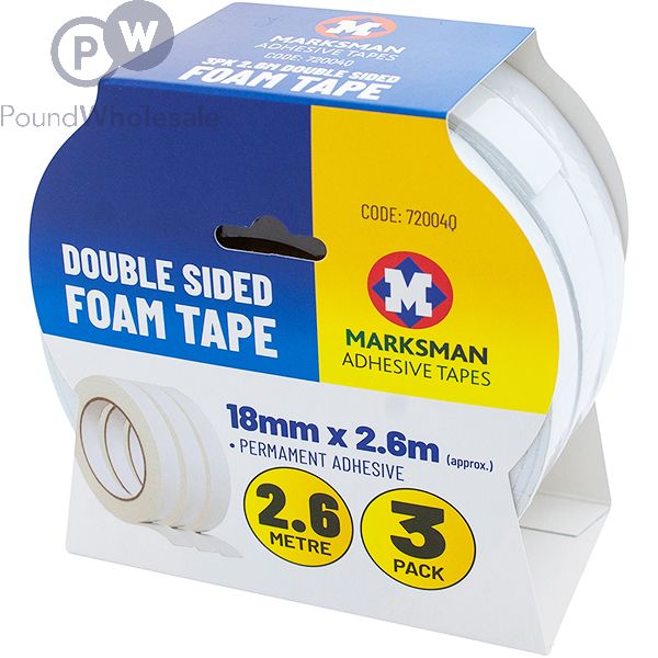 Wholesale Marksman Double sided Foam Tape 18mm X 2.6m 3 Pack Pound Wholesale Very well made.