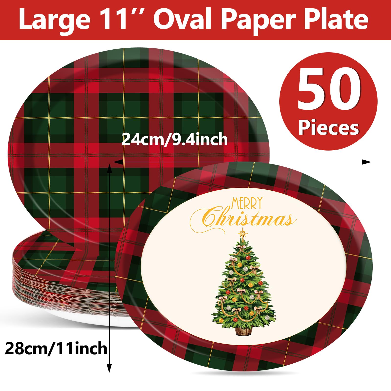 50 PCS Christmas Red Green Gingham Oval Paper Plates Large 11 Disposable Christmas Family Theme Party Decoration Supplies Heavy Duty Dish Tray for Very well made.