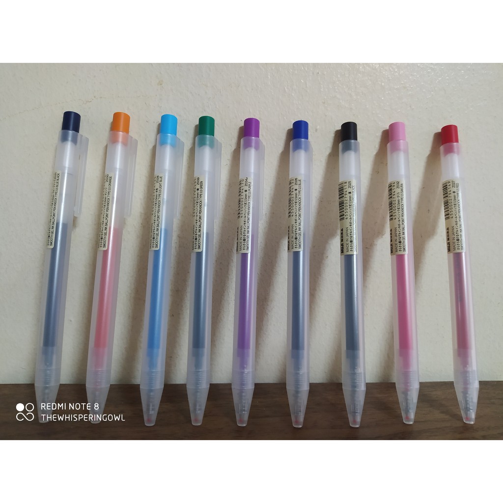 muji gel ink ballpoint pen cap type 0.5 purple green and orange Very well made.
