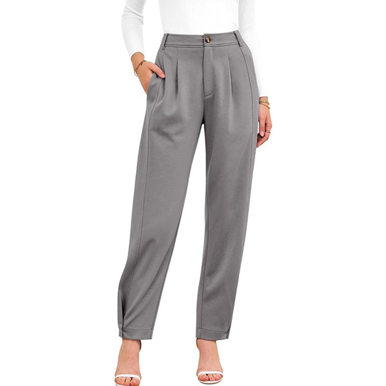 Mohiass Cropped Pants for Women High Waisted Business Causal Pleated Elastic Waist Cuffed Hem Work Trousers Dress Pants Gray XS Walmart Very well made.
