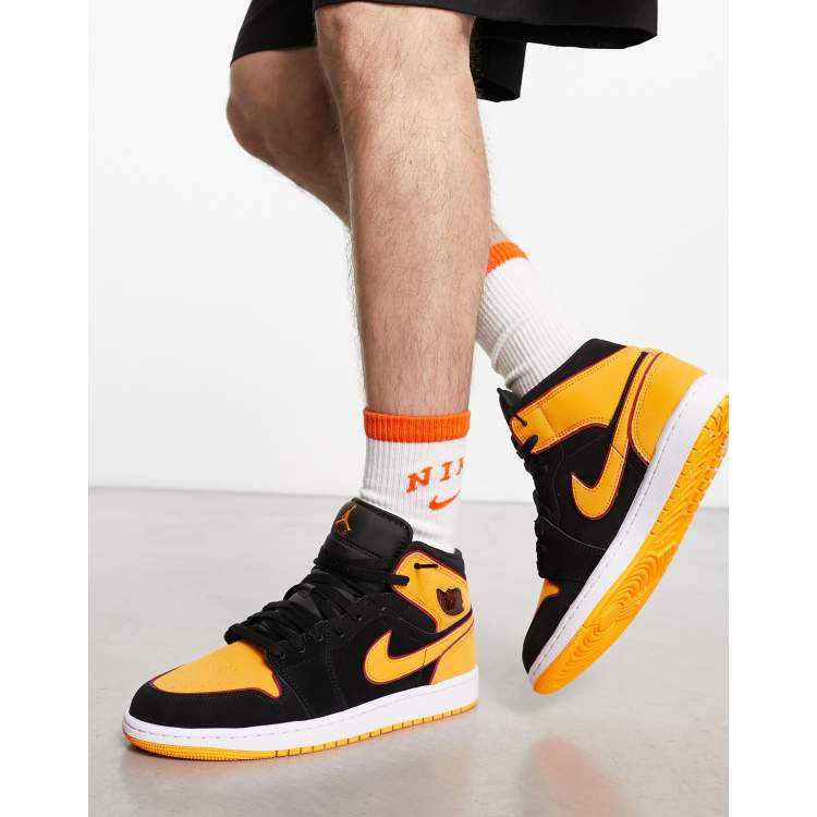 Zapatillas de deporte negras y naranja vivo Air Jordan 1 Mid de Very well made.