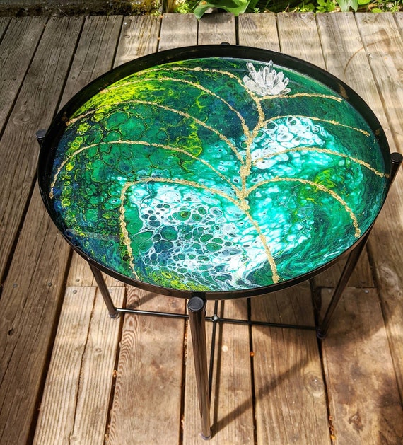 16 Diameter Green Metal Side Table Paint Pour Original With Quartz Crystal Cluster Gold Embellishment and Resin Finish Resin Table Etsy Ireland Very well made.