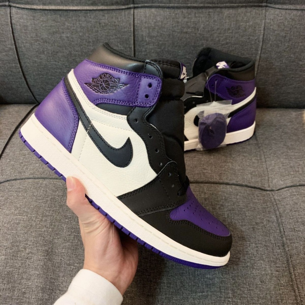 Nike Air jordan 1 Hugn negro p rpura dedo del pie alto top campus antideslizante transpirable retro todo partido ocio deportes zapatos de baloncesto Very well made.