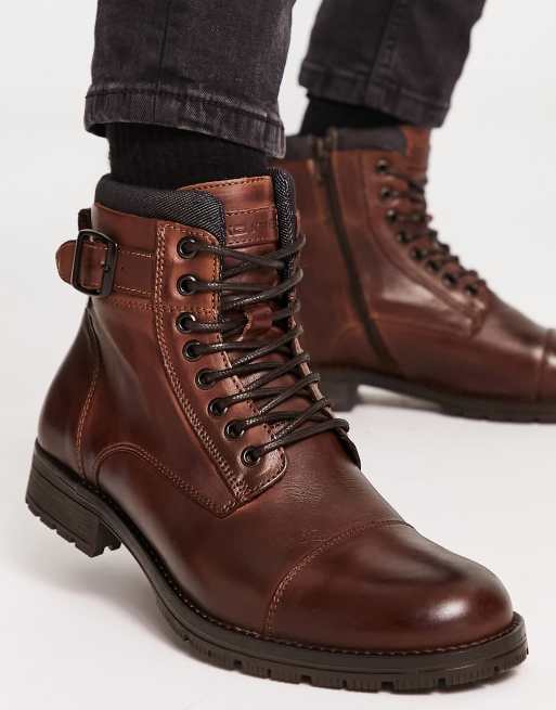 Botas marrones con cordones y ribete en la ca a de cuero de Jack Jones Very well made.
