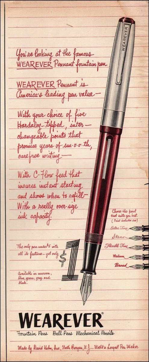 1940 s Vintage ad Wearever Fountain Pens retro Cursive Writing Price 10 07 22 Very well made.