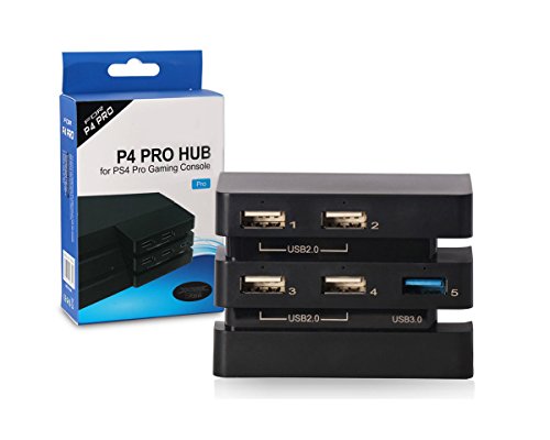 PS4 Pro USB Hub 3.0 USB Extension Adapter Splitter Charging Port 1x USB3.0 and 4X USB2.0 with LED Black Color PS4 PlayStation 4 Very well made.