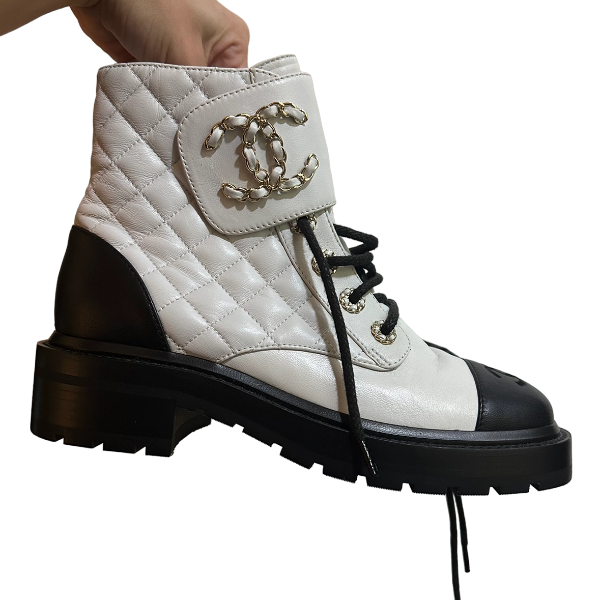Fashion Jackson Wearing Chanel Quilted Combat Boots 1 Chanel Very well made.