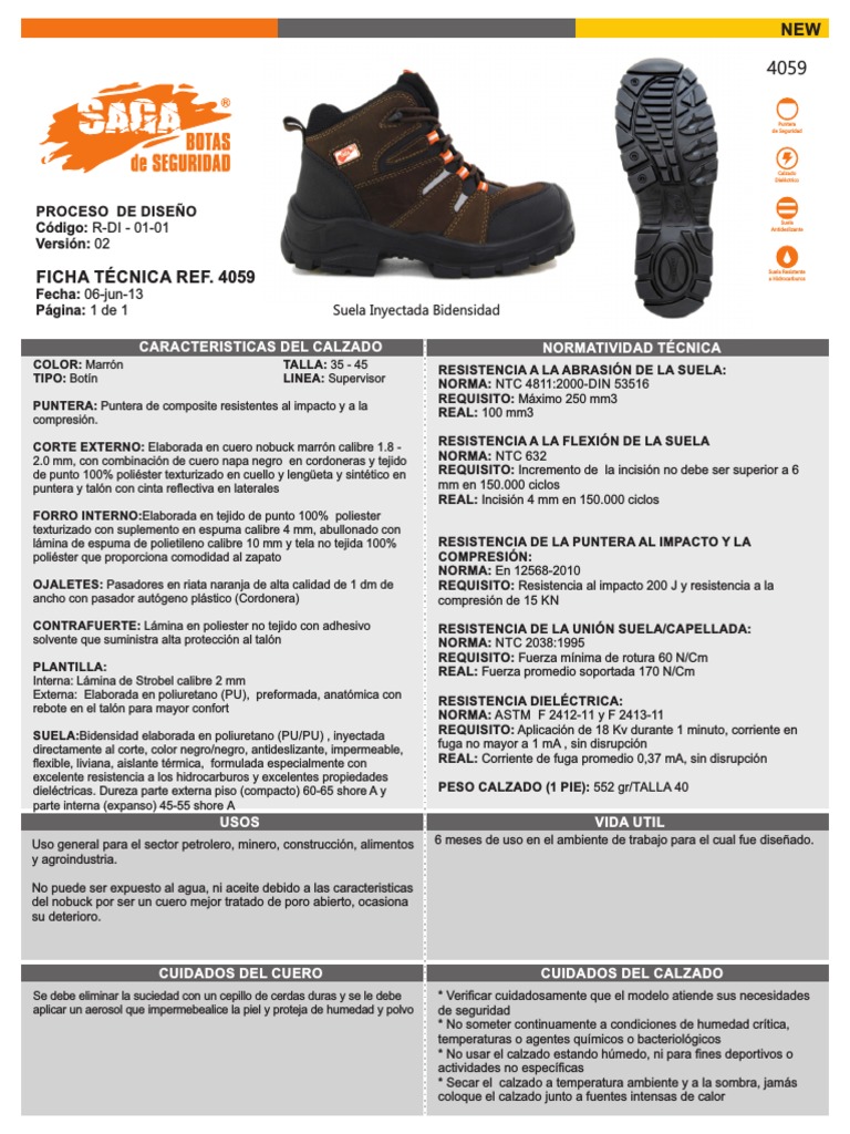Ficha Tecnica Bota Saga 4059 PDF Calzado Qu mica Very well made.