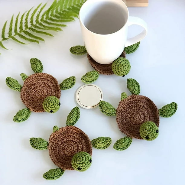 Handmade Turtle Coasters Cute Crochet Weave Drink Coaster Set Creative Knitted Desktop Turtle Coaster for Coffee Table Tabletop Protection Home Decor 4 Pack Walmart Very well made.