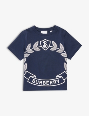 BURBERRY Cedar brand print short sleeve cotton T shirt 4 14 years Selfridges Very well made.