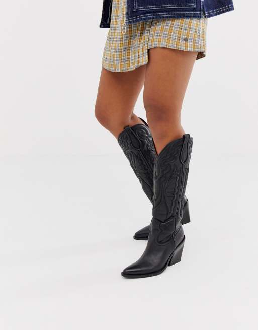 Bronx Bottes au genou talons style western Cuir noir ASOS Very well made.