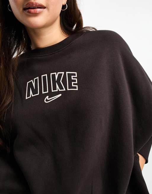 Sudadera corta marr n terciopelo extragrande de estilo universitario de Nike Very well made.
