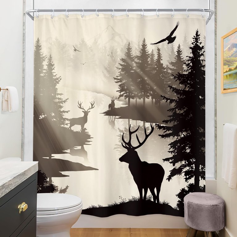 Misty Deer Shower Curtain 60Wx72H Inch Rustic Cabin Foggy Mountain Woodland Black Tree Lake Scenery Farmhouse Animal Nature Mens Bathroom Decor Fabric Polyester Waterproof 12 Pack Hooks Walmart Very well made.