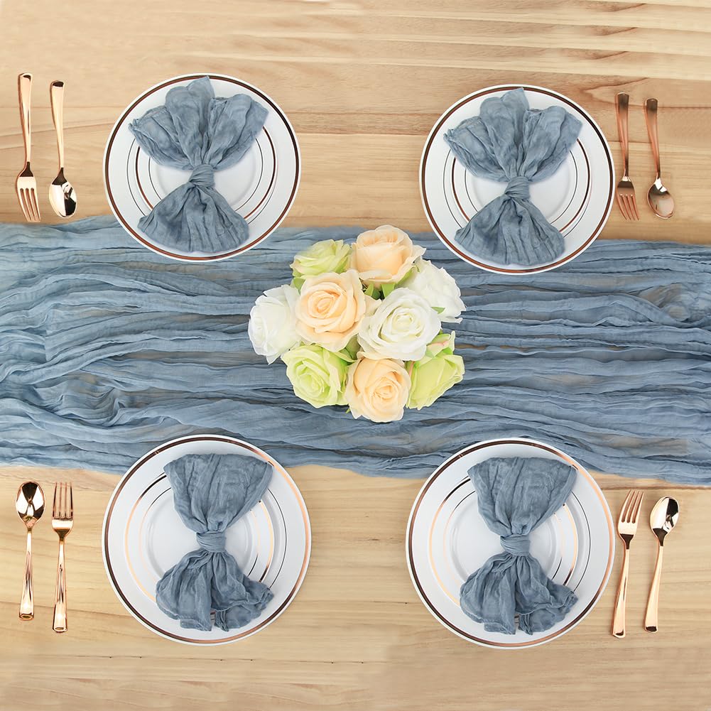 Dusty Blue Cheesecloth Table Runner and Napkins Set Boho Gauze Cheese Cloth 13 Ft Table Runner with 12 Napkins Rustic Wrinkled Table Runner and Very well made.