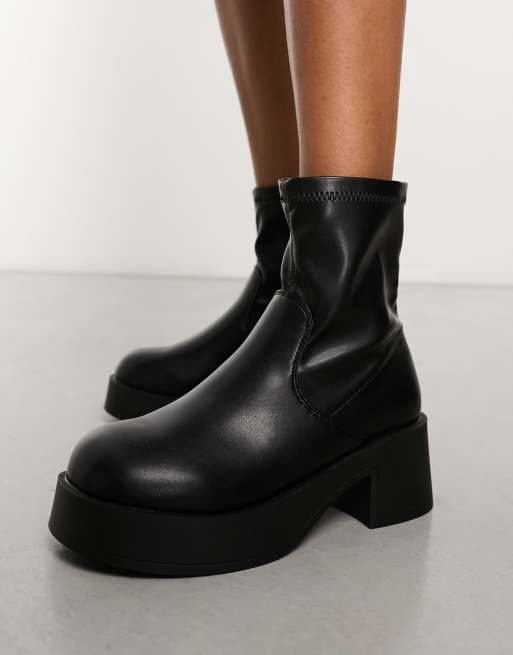 Botines negros de tac n de efecto cuero de Pimkie Very well made.