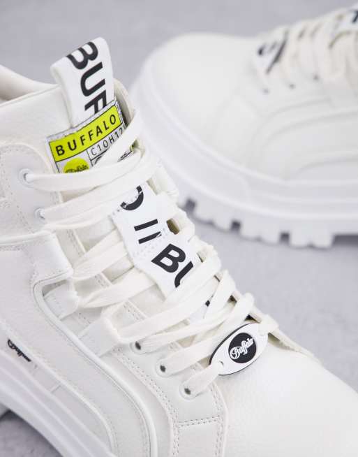 Buffalo vegan aspha mid chunky boots in white Very well made.