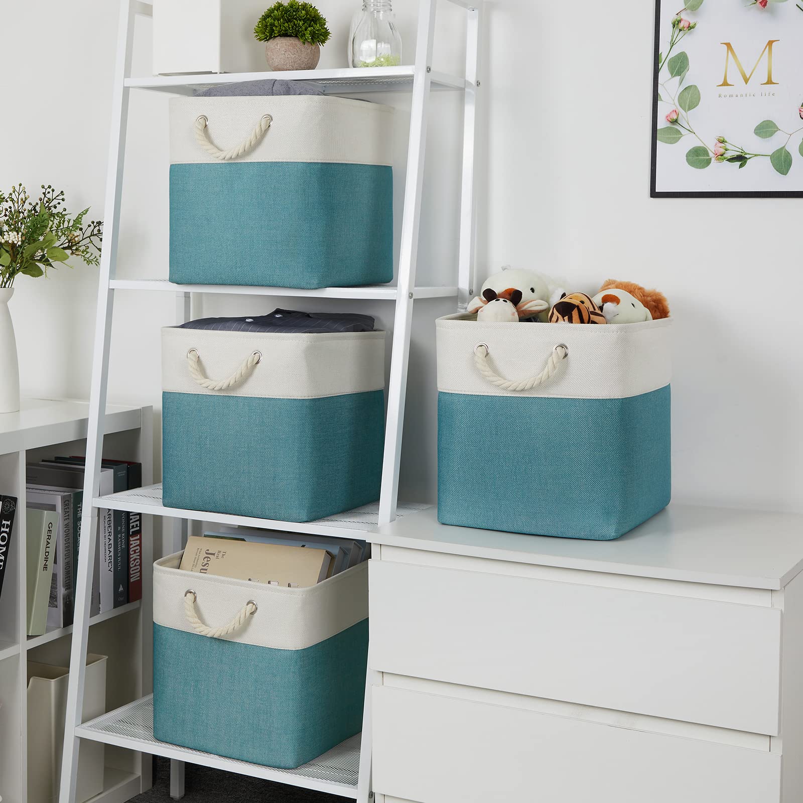 Temary Cubes Storage Baskets 12 Inch Cube Storage Bins for Shelf Fabric Storage Cubes for Gift Empty Toy Baskets for Kids Collapsable Box Baskets for Storage White Teal Amazon Home Kitchen Very well made.