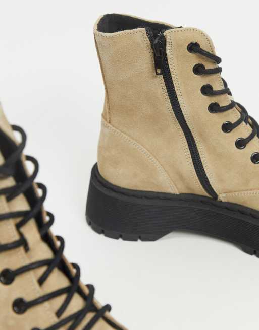 Vero Moda Bottines en cuir lacets avec semelle chunky Fauve Very well made.