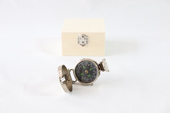 Nautical Brass round Sundial Compass with Digital Display Brown Nautical Star Pocket Compass Lid Leather Box Gift Item Hiking Very well made.