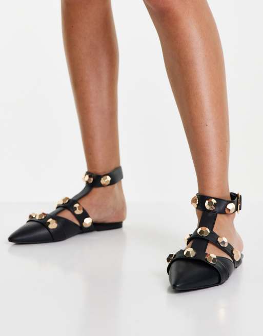 Bailarinas planas con tachuelas hebilla y lazo Very well made.