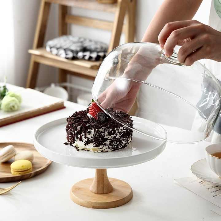 Hot sale Creative ceramic stilt flat pan European cake pan Wedding cake with blown glass lid Very well made.