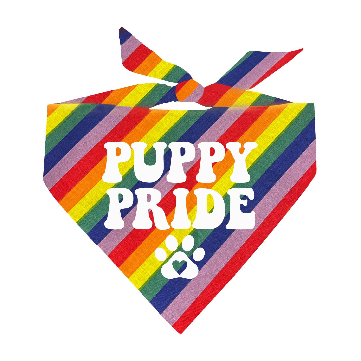 Puppy Pride With Heart Paw LGBTQ Rainbow Triangle Dog Bandana Rainbow Stripes One Size 740 Very well made.