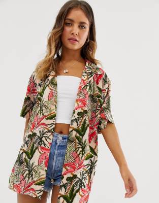 ASOS DESIGN short sleeve open shirt in floral tropical print Very well made.