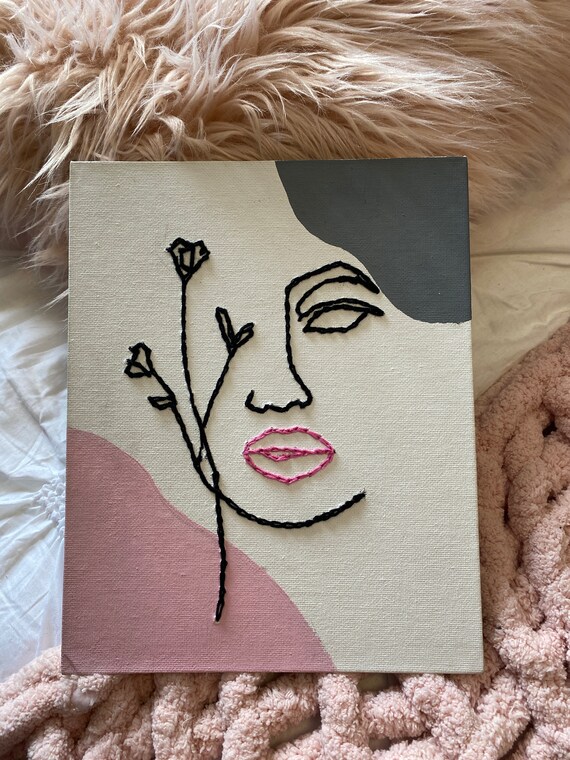 Buy Embroidered Line Art Painting Embroidery Painting Embroidered Canvas Painting Minimalist Painting Line Art Canvas Aesthetic Art Online in India Etsy Very well made.