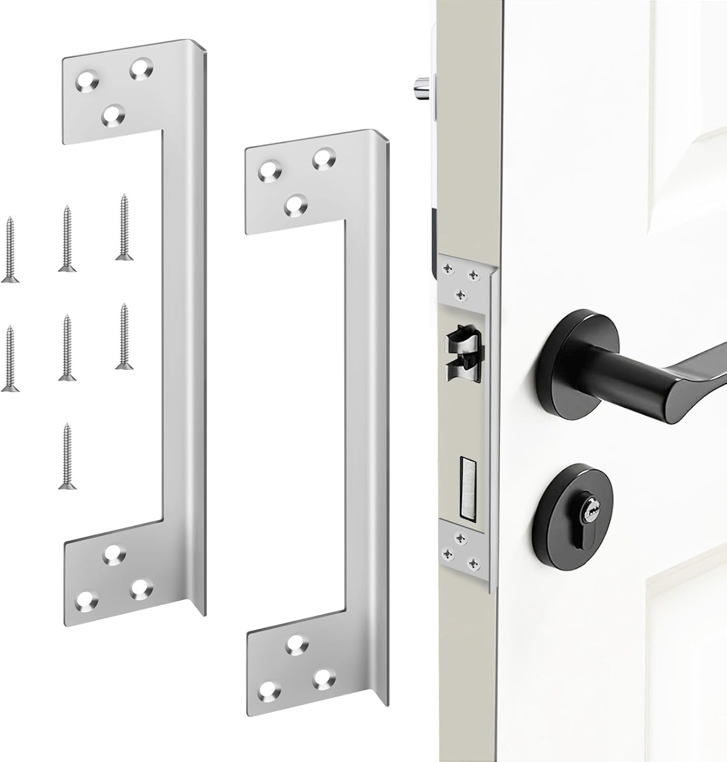 Lock and Door Reinforcer Door Lock Reinforcement Plate Stainless Steel Home Security Door Lock Plate with 1 3 4 Thickness 2 3 8 Backset and 2 1 8 Bore Walmart Very well made.