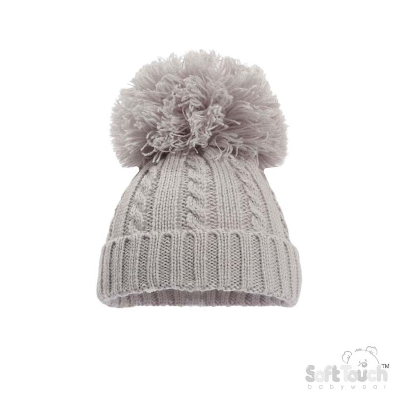 Grey Elegance Cable Knit Hat with Pom Pom NB 12 Months Very well made.